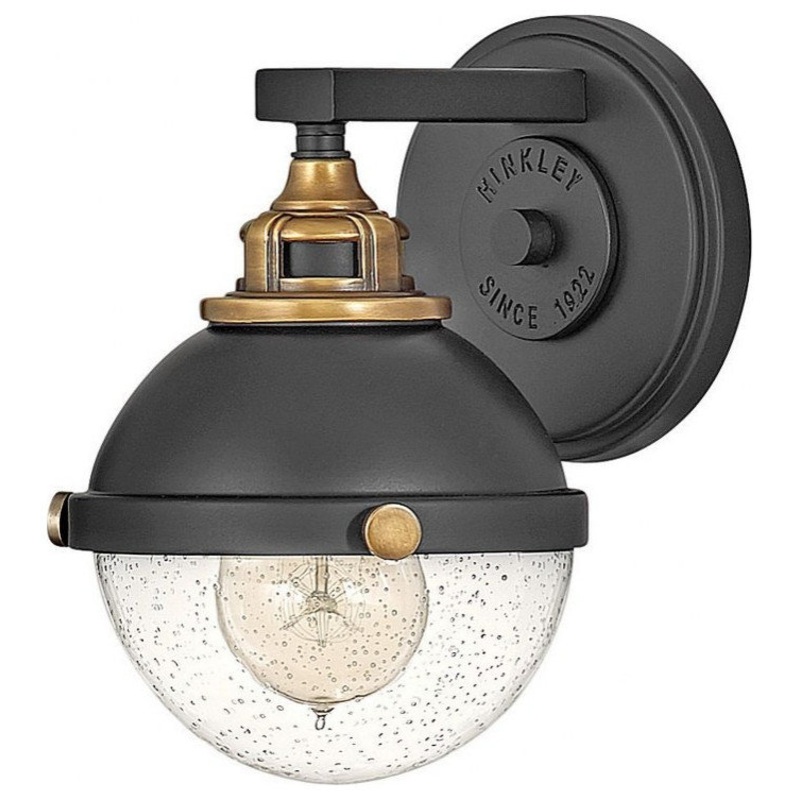 1 Light Bathroom Vanity-Black Finish . Newport Circles chic vibe transcends style boundaries. A seamless dome shade features a cast-fitter and an elegant capture ring that secures the clear seedy glass with decorative cast knobs. Spanning vintage to industrial classic to transitional Newport Circle sea