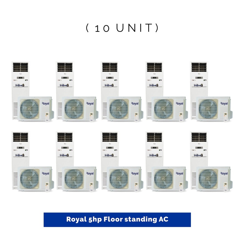This Combo package contains (10 UNIT COMBO) - Royal 5hp Inverter Floor standing AC 50CRFN1-INVThe Royal 5HP Inverter Floor Standing AC (model 50CRFN1-INV) is a high-performance air conditioning unit designed for larger spaces. Here are some key features an