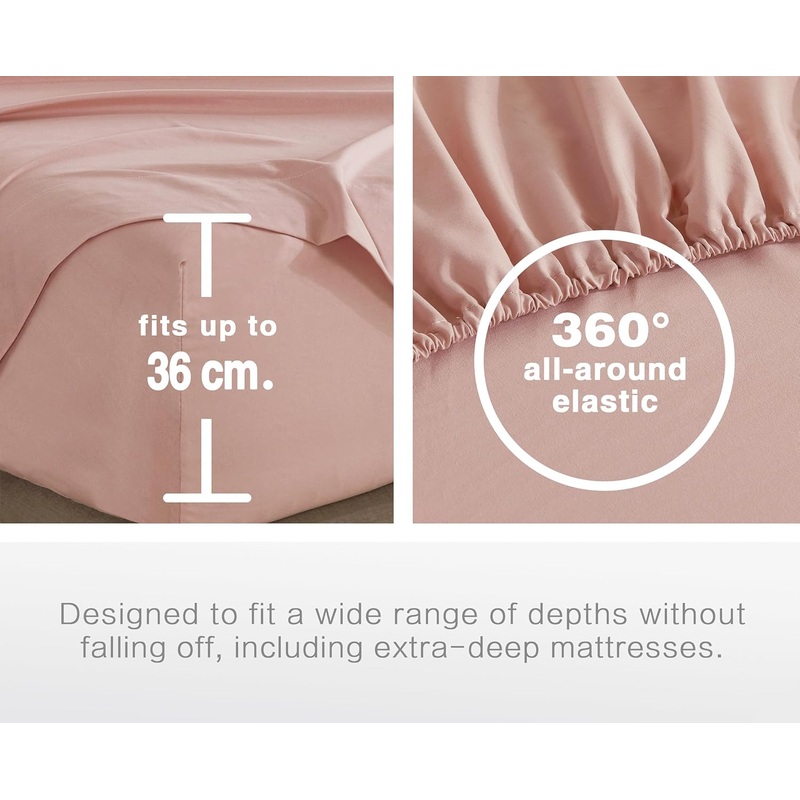 – Double Size: 1 Fitted Sheet (137×193+40cm) + 2 Pillowcases (48x73cm)