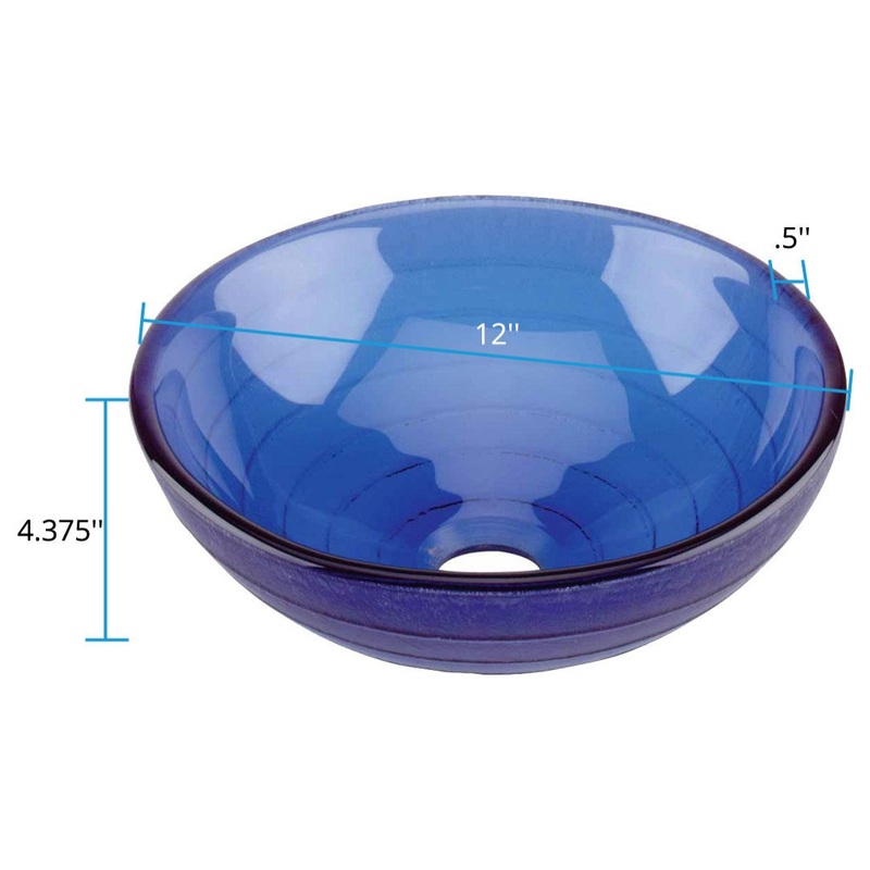 CONCENTRIC FROSTED BLUE TEMPERED GLASS COUNTERTOP MINI VESSEL SINK WITH DRAIN Our nature inspired Frosted Blue Tempered glass vessel sink with Concentric Circle Patterns is five times stronger than glass. It can endure up to 350 F degrees and can resist mo