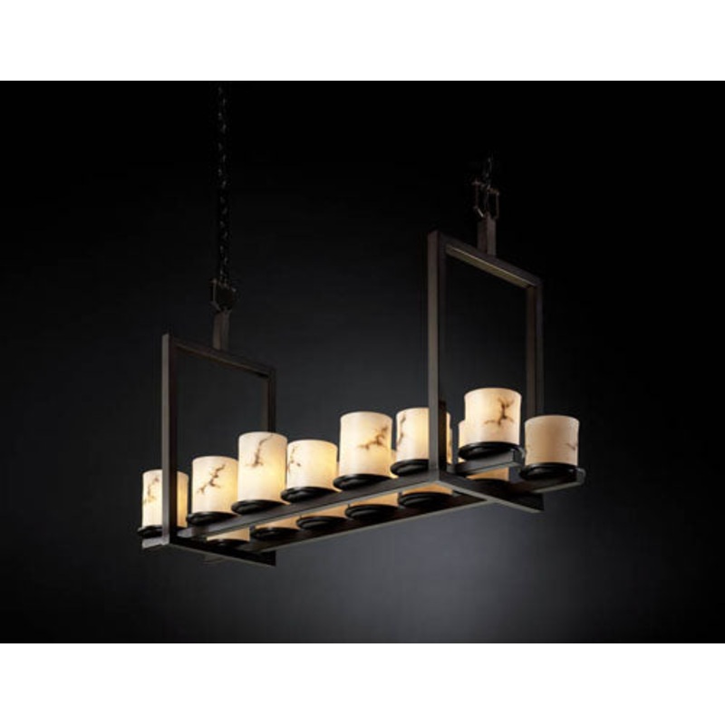 Specifications for this Justice Designs 14 Light ChandelierWidth is 12.5Width: 13.00"Height: 27.00"Length: 42.00"Chain: 6`Wire: 10`Canopy: .75" H x 35" L x 5" WLight InformationLight Bulbs and/or Light Source are not included.Unsure what bulbs to add to yo