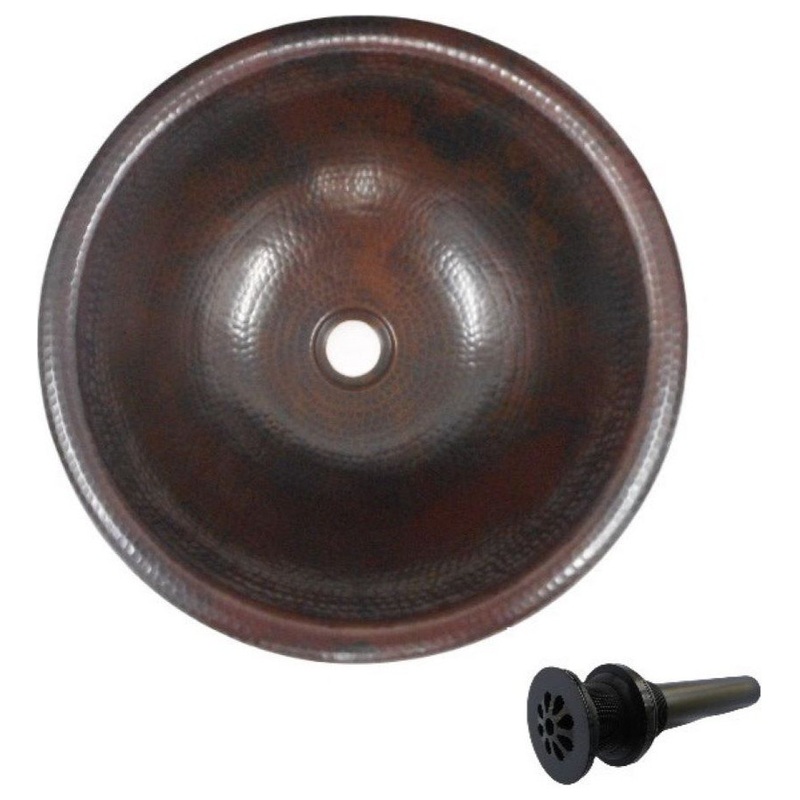SimplyCopper 15 elegant round bowl design, created of 18-gauge copper which is hand-hammered to provide a rustic antiqued look. This copper sink is installed as a drop- in ..