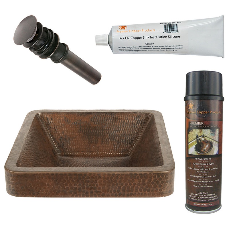 -15″ Square Skirted Vessel Hammered Copper Sink (VSQ15SKDB)