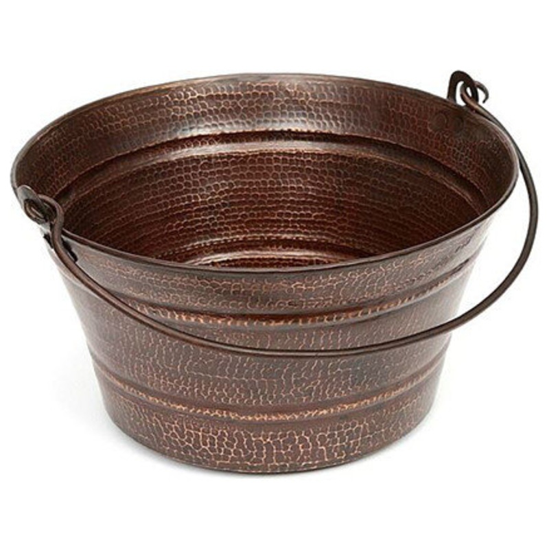Complete the rustic-inspired design of your bath with installing a 16" Bucket Copper Vessel Sink by SoLuna! At 16 inches diameter and 8 inches depth, this sink looks and feels like an actual copper bucket with a drain hole at the bottom. A unique wire hand