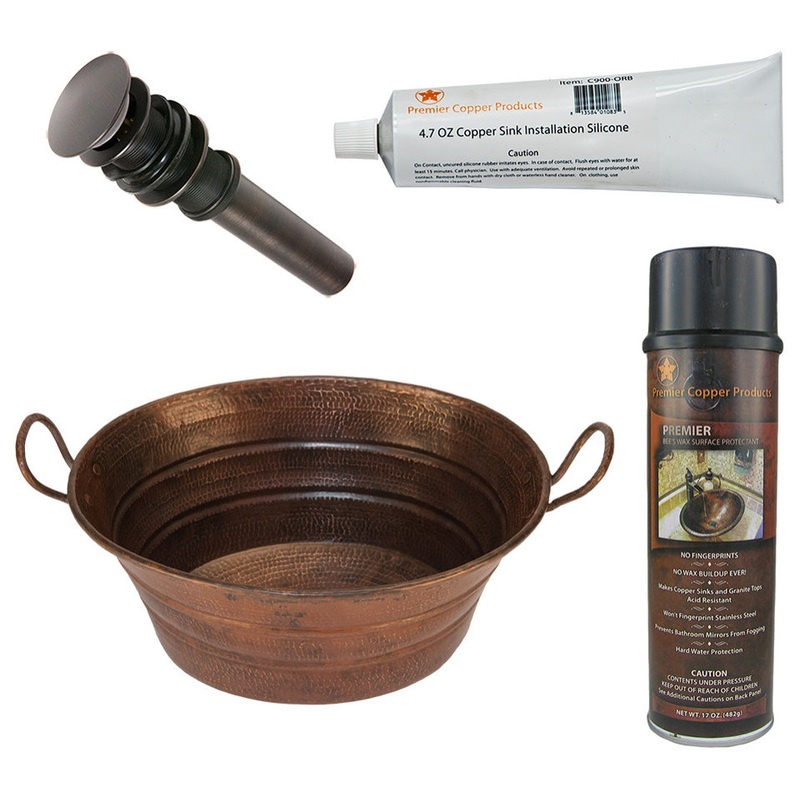 -16″ Oval Bucket Vessel Hammered Copper Sink with Handles (VOB16DB)