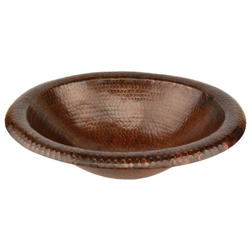 18″ Wide Rim Oval Self Rimming Hammered Copper Bathroom Sink Features: