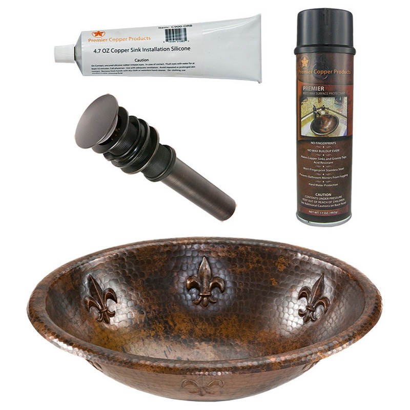 -19″ Oval Fleur De Lis Self Rimming Hammered Copper Sink (LO19RFLDB)