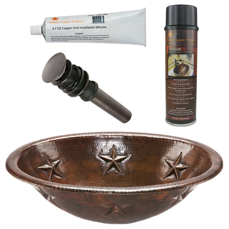-19″ Oval Star Self Rimming Hammered Copper Sink (LO19RSTDB)