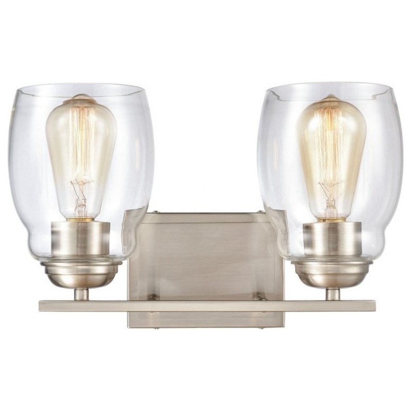 2 Light Bathroom Light-Brushed Nickel Finish . NULL Product ID174423598Manufactured ByBailey Street HomeSold ByBailey Street HomeSize/WeightW 14" / D 6" / H 9" / 3 lb.ColorBrushed NickelMaterialsSteelAssembly RequiredNoCategoryBathroom Vanity LightingStyle