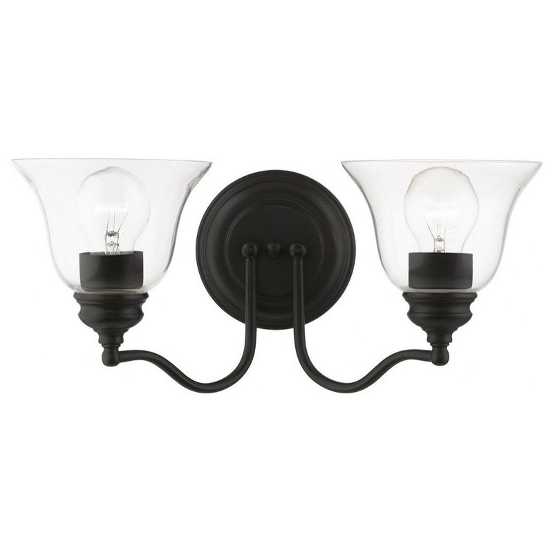 2 Light Bathroom Light In Transitional Style-7.5 Inches Tall and 15.25 Inches Wide-Black Finish . Bring a refined lighting style to your bath area with this Roy King Gardens collection two light vanity sconce. Shown in an antique brass finish and clear gla