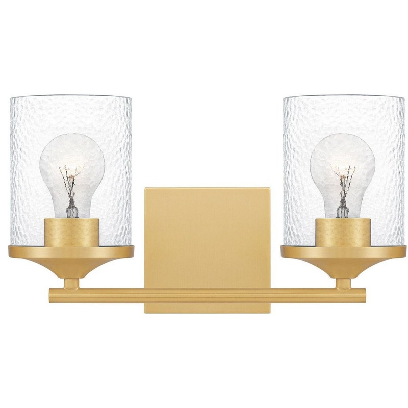 2 Light Steel Medium Bathroom Light Fixture with Clear Hammered Glass-7.75 Inches H by 14 Inches W-Aged Brass Finish . Add beautiful light to smaller spaces with the Kings Glade series of venity lights and pendants featuring clear hammered glass in a range