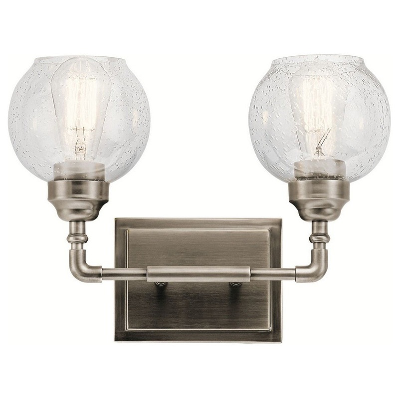 2 Light Transitional Vanity Light with Vintage Industrial inspirations 10.75 inches tall by 14.75 inches wide-Antique Pewter Finish .