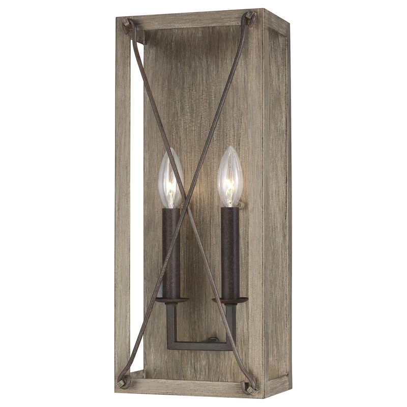 The Generation Lighting Lighting Thornwood two light wall sconce in washed pine is an ENERGY STAR qualified lighting fixture that uses fluorescent bulbs to save you both time and money. The hand applied finishes on Thornwood exude authenticity, combining the tactile with the time-worn. Perfect proportions and honest functionality complete the package. The Thornwood lighting collection offers three-light, four-light and eight-like chandeliers, an eight-light linear, four-light foyer chandelier, and a two-light wall sconce. The two-light wall sconce is Damp Rated. Available in Washed Pine and a Weathered Iron Finish.