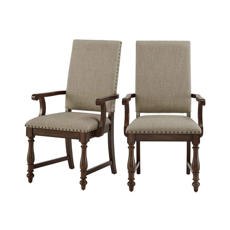 2 Pack Dining Chair, Turned Legs & Wood Arms With Cushioned Seat, Grayish Brown – Traditional – Dining Chairs – by Decor Love