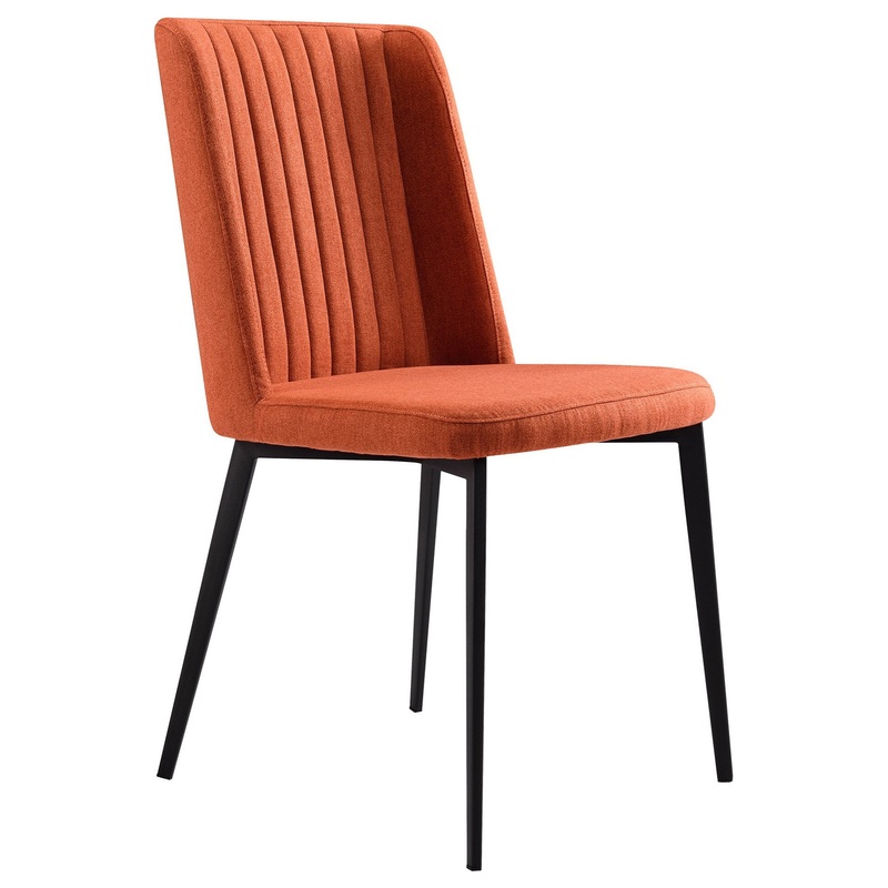-Modern Side Chair in Matte Black Metal Finish and Orange Fabric -Tall back is stylish and provides great upper back support -Foam padded seat is plush and comfortable, excellent to sit on -Straight leg design includes floor protectors, assuring that no da