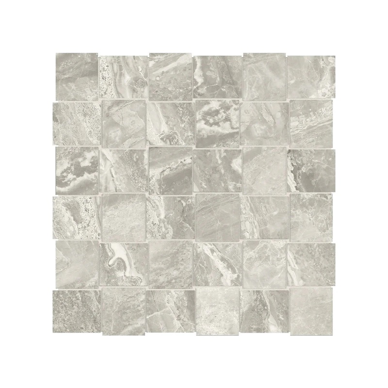 2″ x 2″ Basketweave Mayfair Stella Agento Polished Porcelain Mosaics. 1 Sheet = .98 Sq. Ft. Argento 2″ x Matte