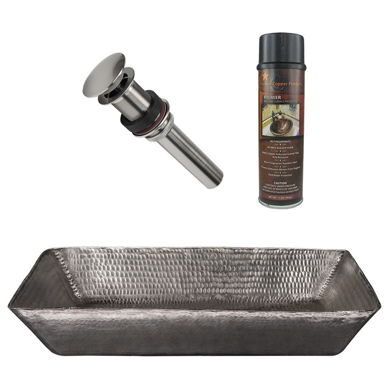-20″ Rectangle Vessel Hammered Copper Sink in Nickel (VREC2014EN)