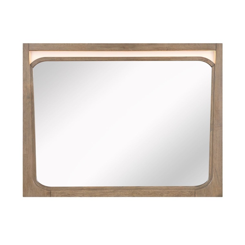 Complete your contemporary bedroom ensemble or add a touch of modern sophistication to any wall with this sleek rectangular dresser mirror. The frame is expertly crafted from a durable blend of hickory veneer, wood, and engineered wood, showcasing a chic light brown finish that enhances its clean lines. A standout feature is the integrated LED lighting, offering a soft, ambient glow that not only illuminates but also adds a stylish, functional element to your space. While assembly is required, the result is a stunning and versatile piece that can be effortlessly paired with a matching dresser or mounted independently to expand your room’s perceived space and brighten your decor.