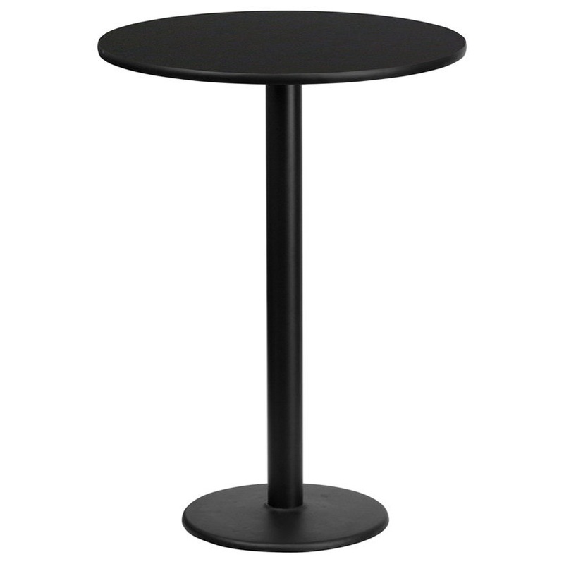 Complete your restaurant, break room or cafeteria with this bar height table top and base configuration. This set is designed for commercial use to withstand the daily rigors in the hospitality industry. This set will also make a great option for your home as a dining table or in the rec room. The reversible black or mahogany top allows you to choose your color of choice and then affix to the base. Surface is heat, scratch and moisture resistant. Use a mild detergent and water, dry clean to keep your tables spotless. Whether you are just starting your business or upgrading your furniture this bar table set will complete the look. [XU-RD-24-BLKTB-TR18B-GG]