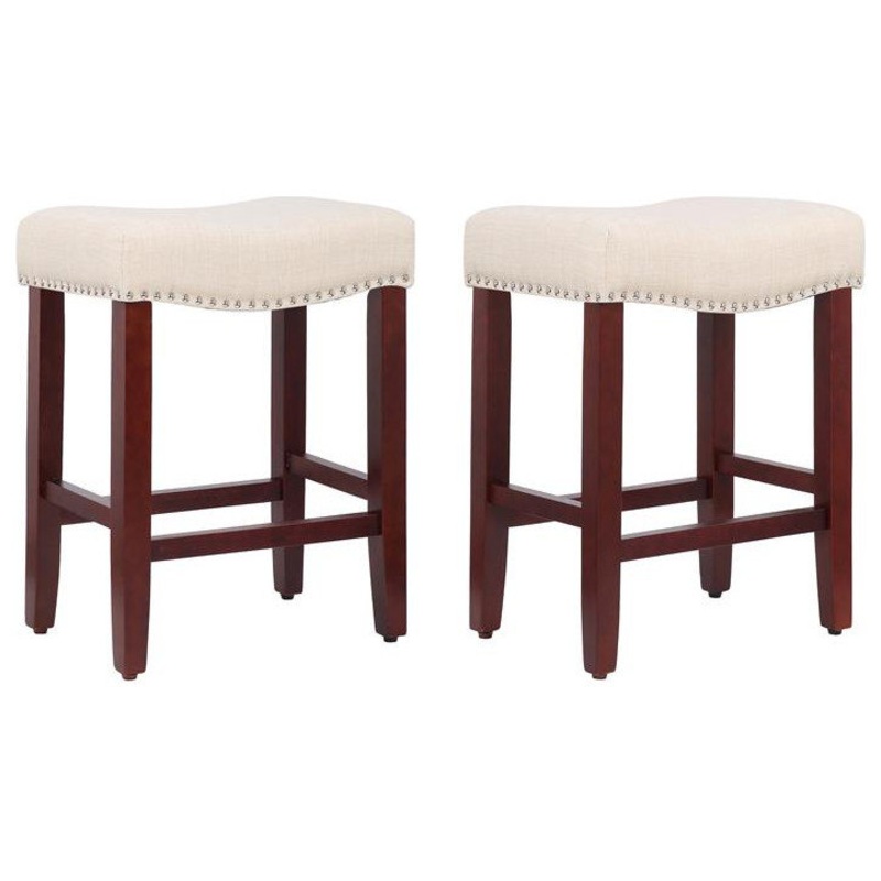 Give your kitchen a stylish update with this attractive Barstool. With solid rubberwood legs and seat frame in cherry finish, the stool is sturdy for safe and reliable sitting. The upholstered seat with silver nail head trim makes it an eye-pleasing piece to liven up your space. Designed with convenient footrest, it is the perfect stool with functionality and style.