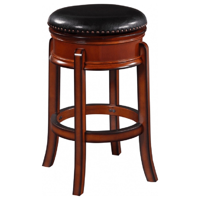 The Hamilton Swivel Stools sophisticated looks never go out of style. With a rubberwood frame and black faux leather upholstery, this swivel stool is engineered to perfection. Supported by a ball-bearing steel plate, the 360-degree swivel wont let you down. Comfort and durability are of equal importance to looks, which is why the Hamilton is performance tested by leading worldwide testing facilities. Legs flare slightly underneath a circular stability stretcher, which is protected by a metal kickplate to guard against scuffs or scratches from your feet. This traditional swivel stool is a welcome addition to any game room, home bar, den, or kitchen. Choose your preferred size and finish from the available options to customize the stool to your space.