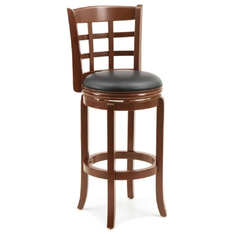 This beautifully constructed swivel stool is the perfect addition to your home. The attractively designed backrest plus the plush black seat, exuberates sophistication. The compatible design will undoubtedly merge seamlessly with any style kitchen, basement, game room, or bar! Constructed from solid hardwood, made with precision construction, and features a steel ball bearing swivel plate for a flawless three hundred and sixty degree swivel, making the Kyoto stool a durably solid piece of furniture. Performance tested by the leading testing facilities that are recognizable worldwide, purchasing this stool is not only a smart choice but also a wise investment. Additionally, the sleek faux leather upholstery encases a high-density foam cushion providing the maximum level of comfort for all who sit.