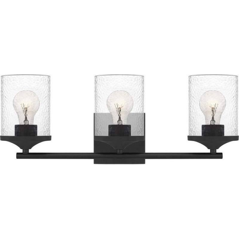 3 Light Steel Large Bathroom Light Fixture with Clear Hammered Glass-7.75 Inches H by 21 Inches W-Matte Black Finish . Add beautiful light to smaller spaces with the Kings Glade series of venity lights and pendants featuring clear hammered glass in a range of finishes like aged brass matte black and polished chrome. Proof that clean simple design is impactful this versatile style would work well in a kitchen bath or home office.