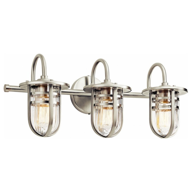 3 Light Transitional Bathroom Light Fixture Damp Location Rated with Coastal Style 10.25 inches tall by 24 inches wide .
