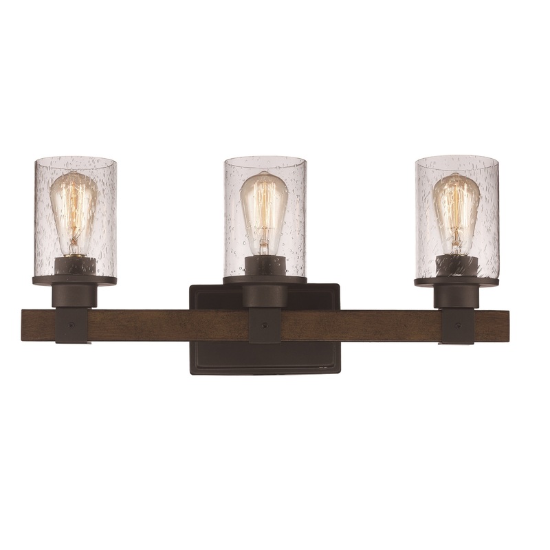 The 3 Light Vanity Bar in Rubbed Oil Bronze with Seeded Glass is a hardwire fixture rated for Damp locations. The fixture uses 3 60 watt E26 bulbs. Bulbs are not included with the fixture.