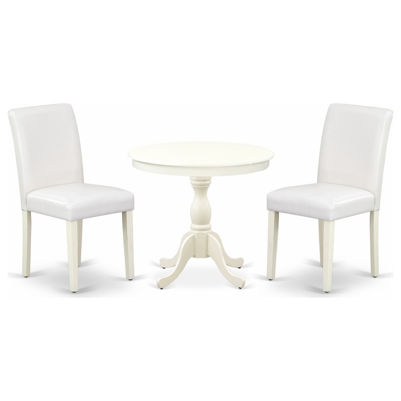 3 Pc Dinette Set, 1 Round Pedestal Table, 2 White Leather Chairs, Linen White – Traditional – Dining Sets – by Morning Design Group, Inc