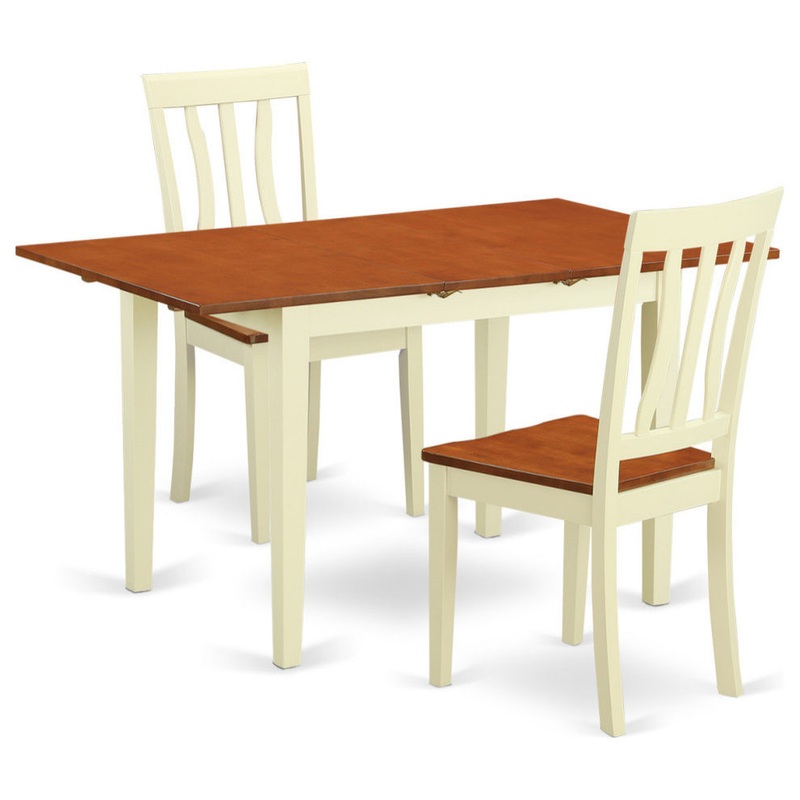 Ordinary, yet eye-catching particular dinette set is perfect for small dining-room. This can be arranged into a 3-piece dinette set. With a mixture of Buttermilk and Cherry finish, the kitchen table and 2 dining chairs form a sophisticated combination for a modern home setting. Durable and crafted with wood, this produces credibility, ease and flexibility to your dinette.