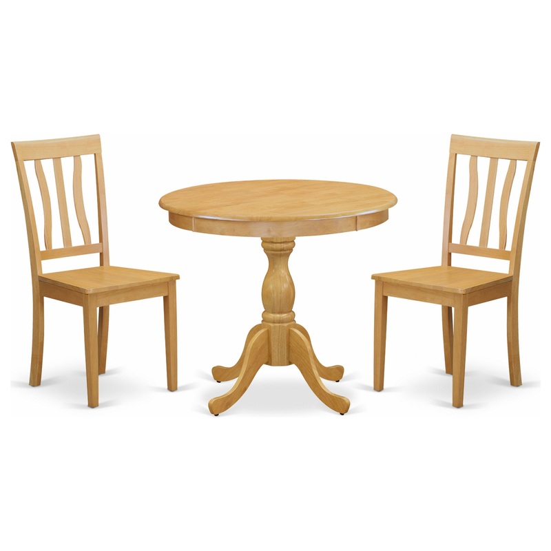 -3-PIECE DINETTE SETS: Our 3-Piece dinette set consist of 1 round pedestal table and 2 kitchen chairs that will add a classic appearance to any home. These versatile pieces feature a classic design that can be incorporated effortlessly into nearly any existing decor. Bring innovative and elegant style to any kitchen area with our wood dining table set.
