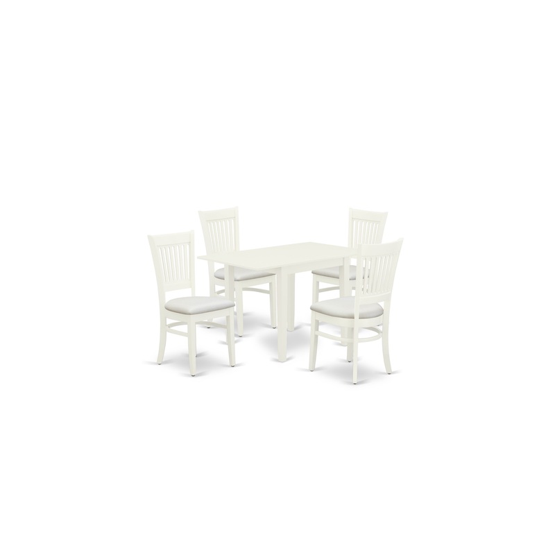 -Our stunning modern dinette set includes a lovely small rectangular dining table and 4 magnificent wooden dining chairs. Our dining room chair is consisting of Linen fabric seat and the back is slatted. This drops leaves wood table has Linen White Rectangular top and Linen White 4 legs. This traditional dining chairs and the small dining table is ideal for any living area.