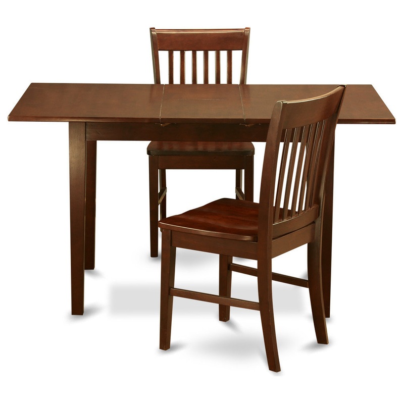 Dine in high end and very coziness with Norfolk table sets. This dinette table set offers quality style with a touch of class to add new dynamic attraction to any dinette table.A simple 12 inch self-storage expansion leaf gives you extra room.Norfolk table and chairs sets are made from the very best Asian wood.Solid wood or padded seats provide spectacular design and style and comfort to this particular small kitchen table set.Dining room table are finished in a classic Mahogany color.