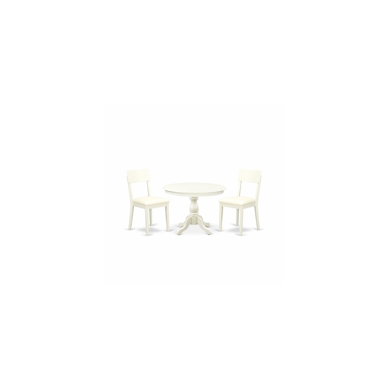 Our 3-Pc dining table set provides a round breakfast table and 2 chairs for dining room which can fully accommodate your family. This kitchen dining table set features a classy and eye catching appearance. The sophisticated design linen white dining room c