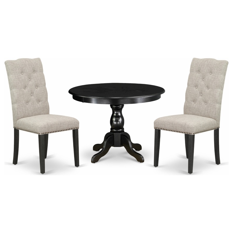 3 Pc Kitchen Set, Table, 2 Doeskin Chairs Button Tufted Back – Traditional – Dining Sets – by Morning Design Group, Inc-HBEL3-ABK-35