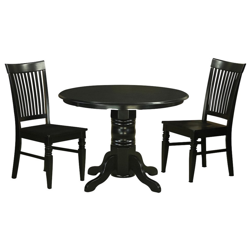 -Package Includes: 3 piece Shelton round kitchen table 42in Diameter with 2 Weston Dining Chair With Wood Seat in a Black Finish.