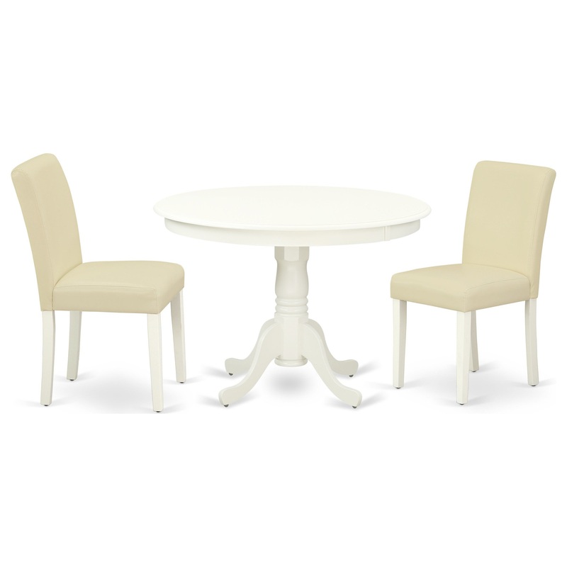 HLAB3-LWH-64 3Pc Round 42 Inch Kitchen Table And 2 Parson Chair With Linen White Leg And Pu Leather Color WhiteThe HLAB3-LWH-64 dining set provides a specific, luxurious Linen White finish well-fitted to any sort of home decoration style. The fresh and cle