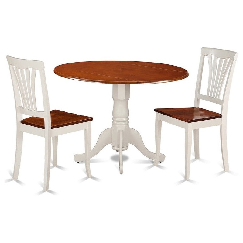 -Package Includes: 3 piece kitchen Round Table with Drop Leaves and 2 solid wood Seat Chairs in a Buttermilk Finish