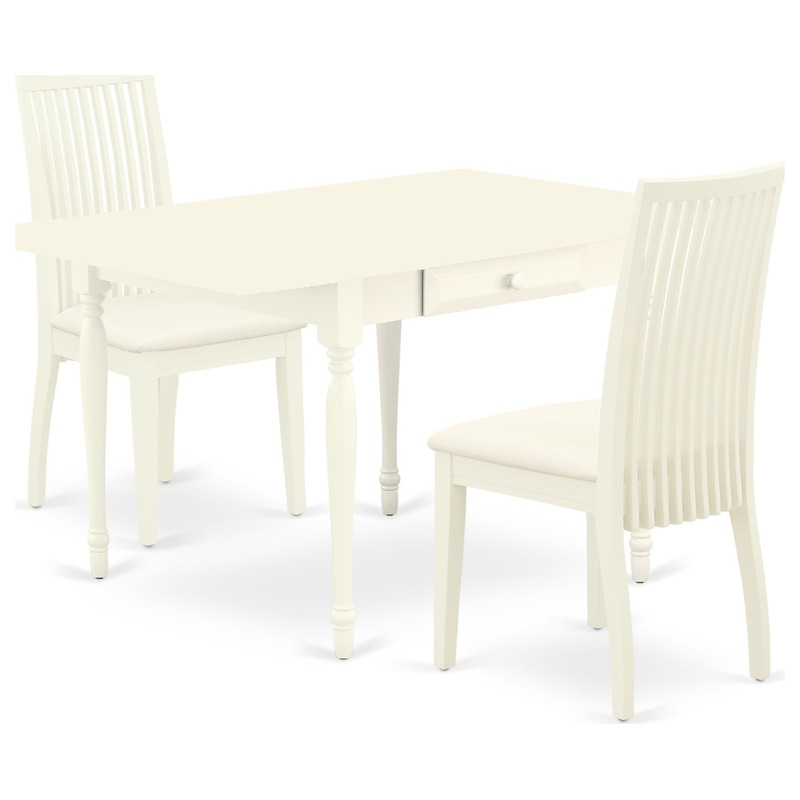 East West Furniture MZIP3-LWH-C 3 Pc Dining Room set - Strong Two 9-Inch Drop Down Leaves Real Wood Kitchen Table and 2 Microfiber Upholstery Seat Dining Chairs, Linen White FinishEast West Furniture 3 Pieces Mid-Century Dining Table SetFabulous dining tab