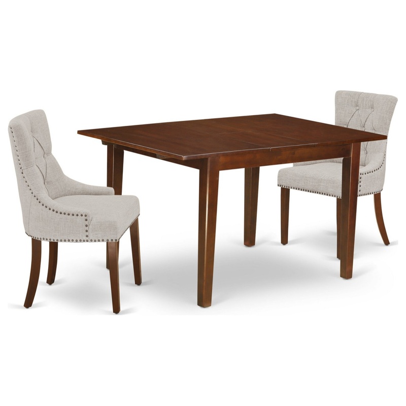 3-Piece Set, Kitchen Table With Leaf, 2 Parson Chairs, Doeskin Fabric, Mahogany – Transitional – Dining Sets – by Kolibri Decor