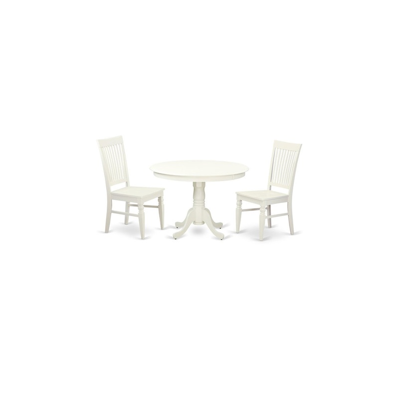 This amazing circular small dinette set will apply a lavish atmosphere for virtually any dining room utilizing its dark slick angles. Each round dining table provides a 42″ width, a 30″ height, which includes a little room for the additional your evening meal invitee. The stylized dining room chairs have a relatively horizontal back panels, for that rather simple yet still harmonious decor. The circular kitchen dinette table and complementing linen white dining chairs supply a good deal of comfortableness while delivering that pristine finish. The circular dining room tables features a detailed stand that branches apart into four curved legs for elegance and structural assistance. 3 pc Hartland set with one round 42in dinette table and two kitchen chairs with wood seats in a linen white finish