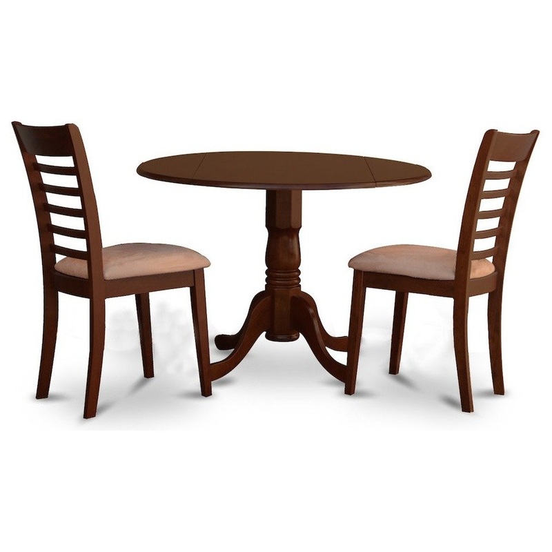 -Package Includes: 3 piece kitchen Round Table with 2 Drop Leaves and 2 Ladder back Chairs with Microfiber Seat in a Mahogany finish