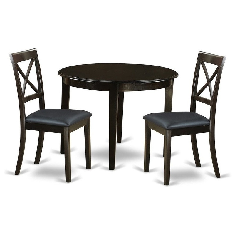-Package Includes: 3 piece Boston table 42 in Round with 4 tapered legs and 2 Boston X Back Chair with faux leather seat in a warm Cappuccino finish