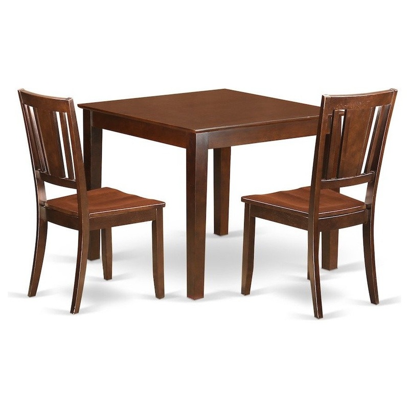 This specific set comes with a proportioned small square table comes with and elegant kitchen chairs. This unique 3 Piece Table and 2 chair set with one kitchen table and two kitchen chairs. Anyone can perfectly fit around this unique dining room table set that features size of 36in square x 30in high. This slick finished top with solid hardwood is both attractive and gorgeous while also supplying a sense of durability. The kitchen chairs provides a remarkable and stylish feature to any kitchen area due to the floral inspired slatted back dining chairs design. Finished to generate the glow of the warm colored Mahogany and the gentle contours that cast subtle while quite efficient shadows, this specific kitchen table set will definitely present distinctive dining experience which feels elegant and cozy.