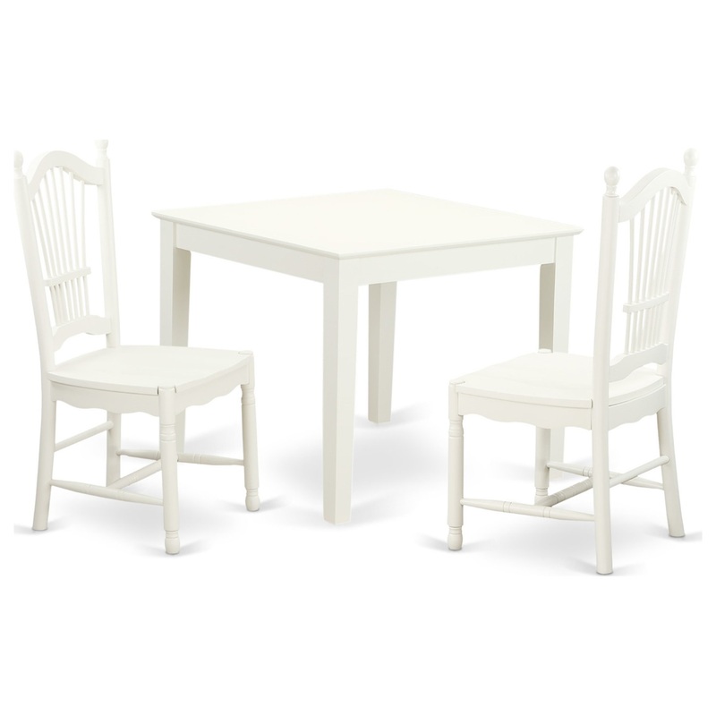 OXDO3-LWH-W 3 PC small Kitchen Table and 2 hard wood Kitchen Dining Chairs in Linen White This distinct set comes with a proportioned square small dining table and stylish dining chairs. This unique 3 Piece Kitchen table and chairs set with one kitchen tab