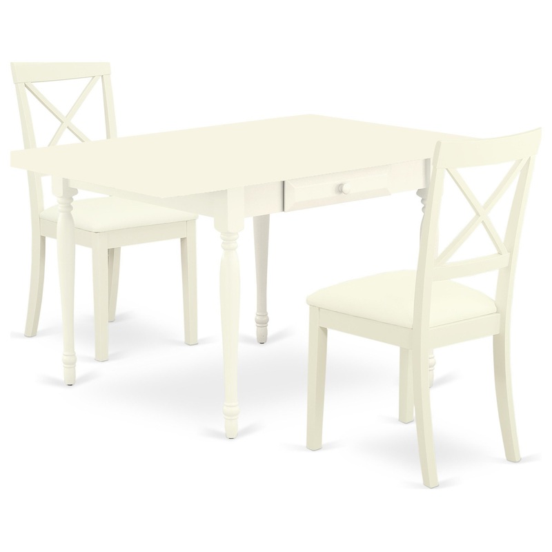 East West Furniture MZBO3-LWH-LC 3Pc Dining Table Set Includes a Dining Room Table and 2 Dining Room Chairs with Faux Leather Seat, Drop Leaf Table with X Back Chairs, Linen White Finish