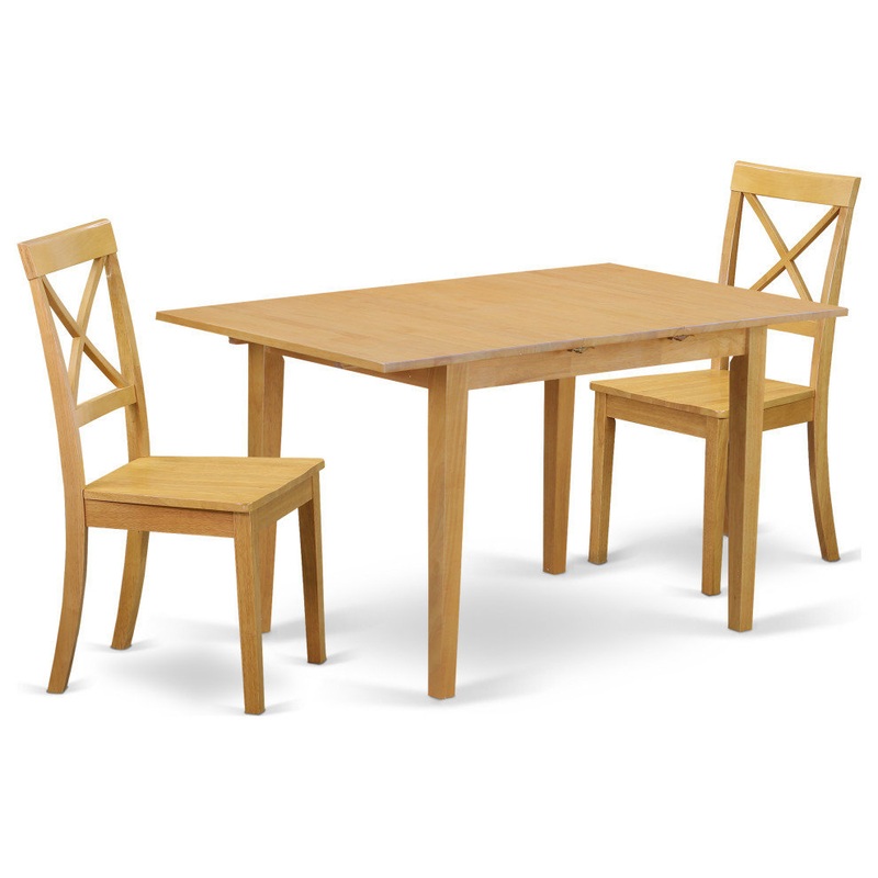 Conventional, yet fabulous this amazing dinette set is great for small dining-room. This can be arranged into a 3-piece dinette set. Dining set offer a elegant golden Oak finish. This kitchen table and 2 dining chairs form a stylish combination for a moder