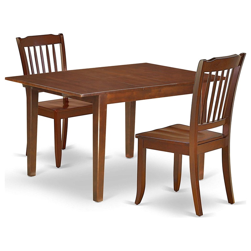 3 Pieces Dining Set, Butterfly Leaf Table & 2 Chairs With Slatted Back, Mahogany – Transitional – Dining Sets – by Decorn