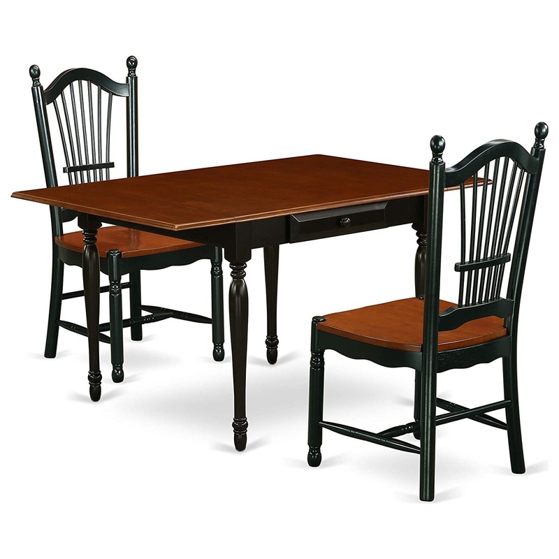 -Solid Wood3 PIECES DINING SET: This 3 pieces dining set contains a rectangular table and 2 dining chairs. Seat up to 2 people, the dining set is ideal for any compact dining place such as the kitchen or dining room. The dinette set for small space integrates two 9-inch drop down leaves that offers additional space for extra food trays and drinks. The dinette set for small space with 2 drawers presents additional storage in the kitchen or dining zone, perfect when there is no capacity for any extra storage furniture.